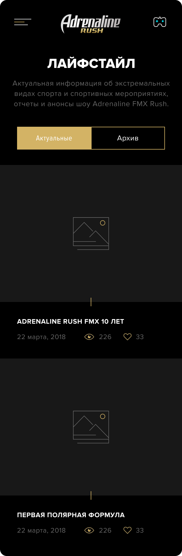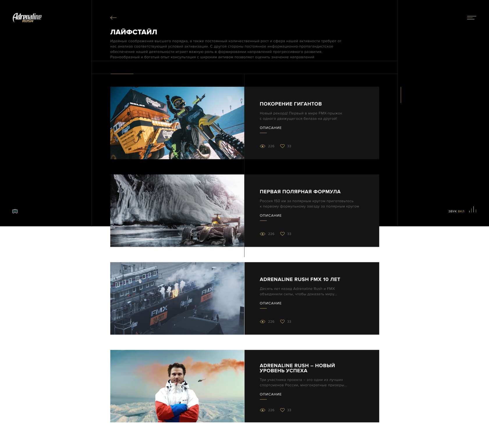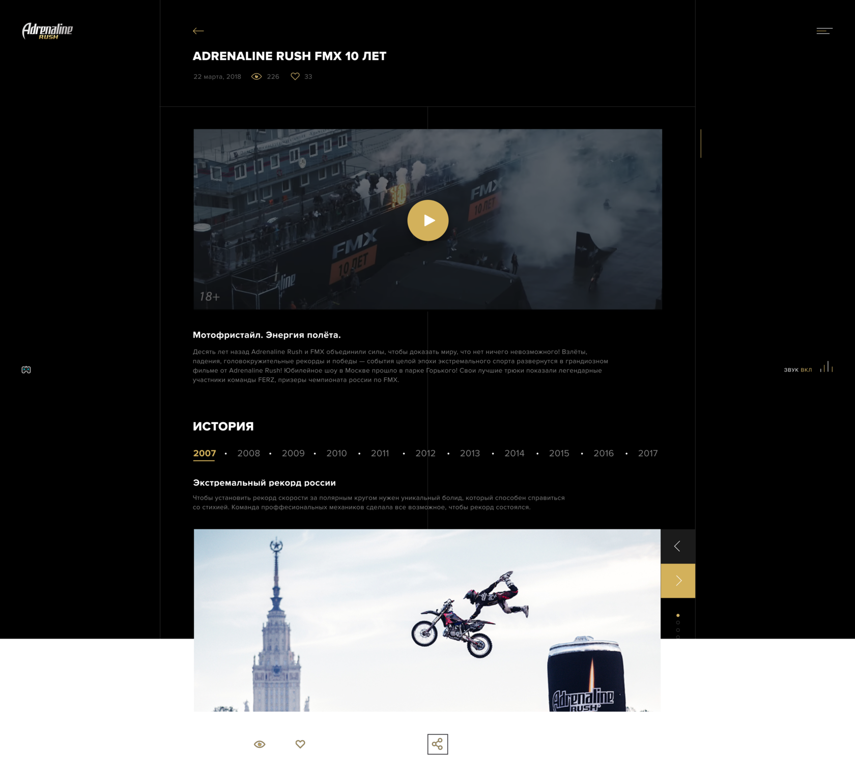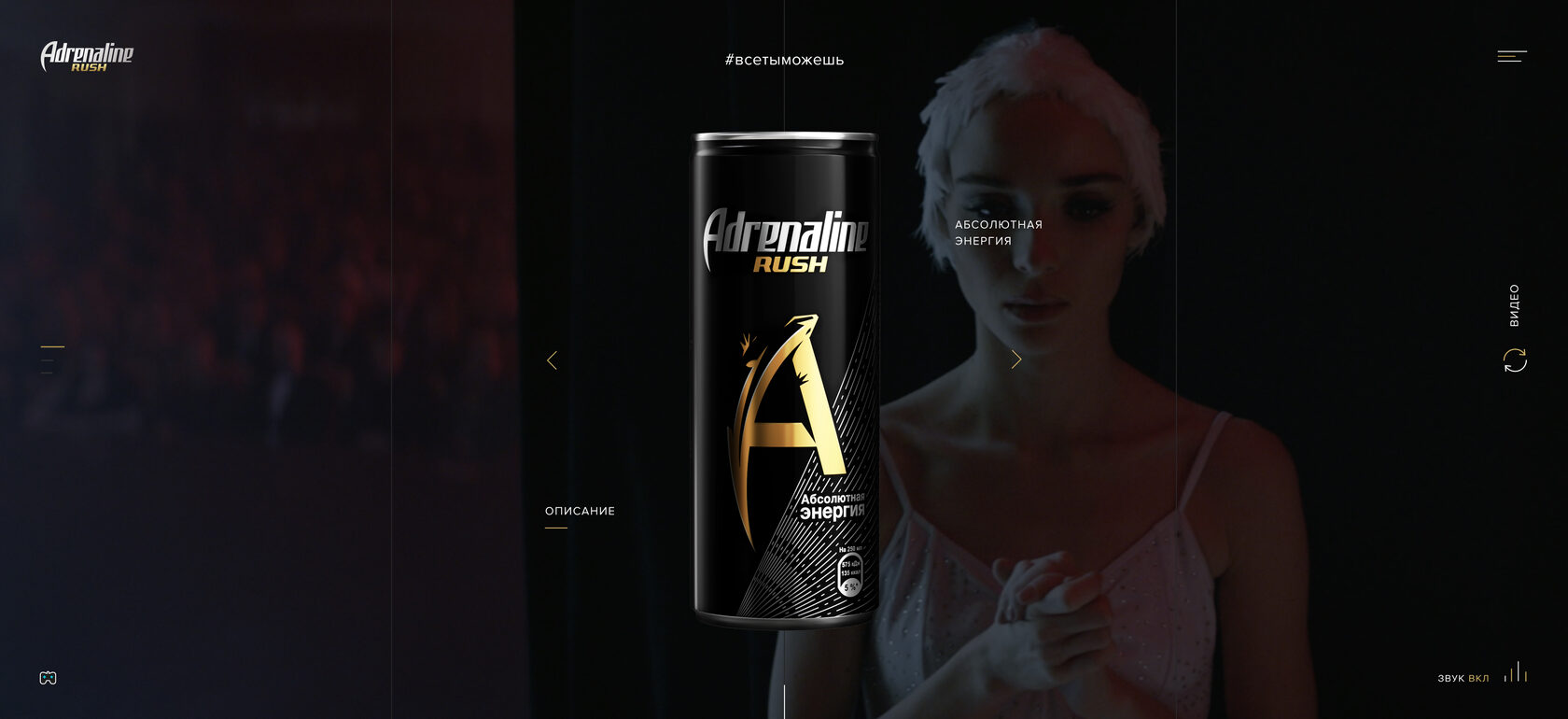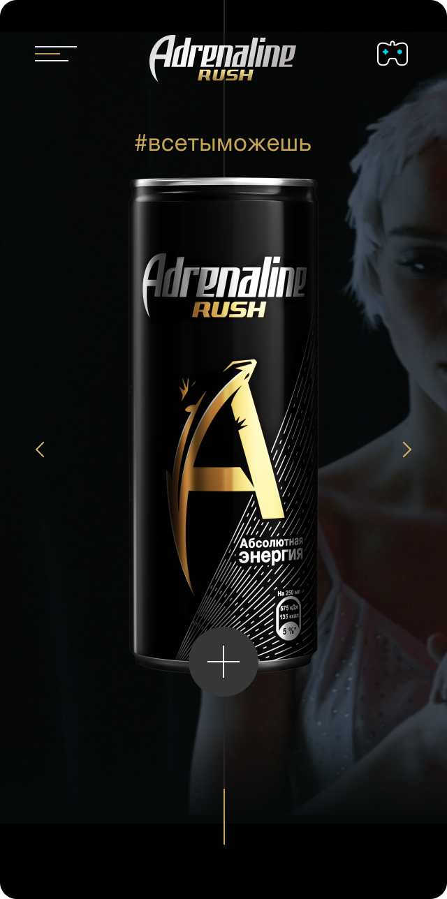 Цель: Создать основной сайт Adrenaline Rush и визуально поддержать глобальную кампанию «Все ты можешь», отстроиться от других брендов энергетиков благодаря минимализму и премиальности. Встроить инфоблок Cyber League для анонсов и результатов кибер соревнований.