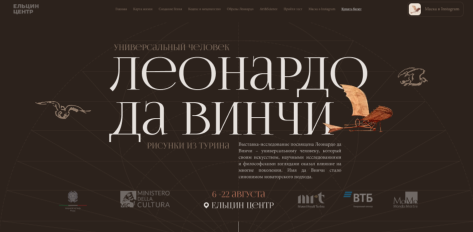 Сайт выставки Леонардо Да Винчи в Ельцин Центре